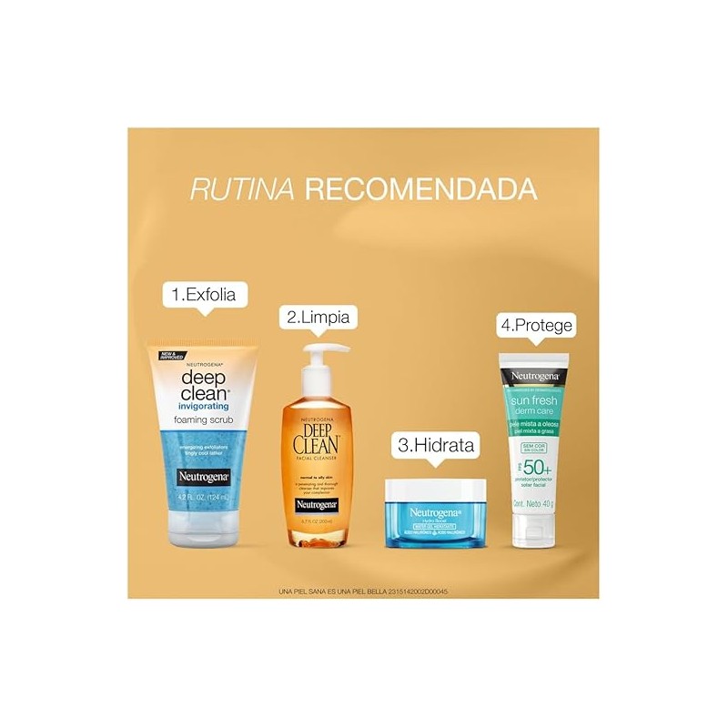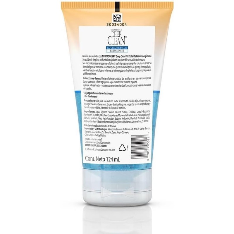 Neutrogena Deep Clean Exfoliante limpia los poros a profundidad removiendo las células muertas. Ideal para piel normal a mixta remueve polvo, grasa y maquillaje.