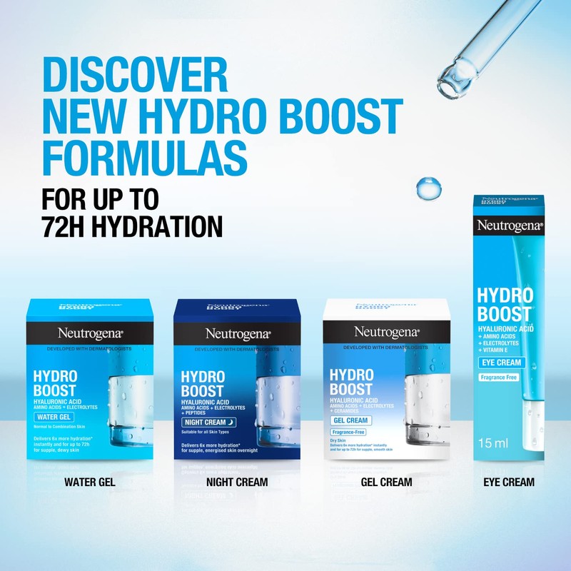 • Continuous Release System - The Neutrogena Hydro Boost Water Gel face moisturiser for women & men has an innovative Continuous Release System that helps boost hydration . This protects the skin barrier, continuously releasing moisture all day, leaving skin smooth, supple and renewed.