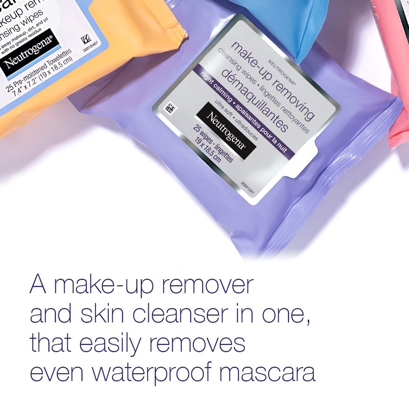 Neutrogena Night Calming Face Wipes, Ultra Soft Makeup Wipes, 25 Count
