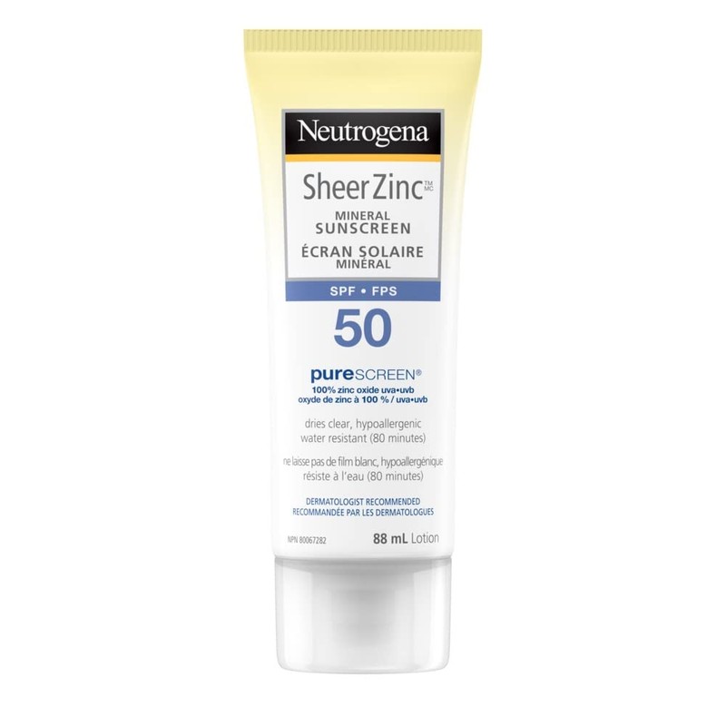 - Neutrogena Sheer Zinc Mineral Sunscreen SPF 50, 88ml, protects your body from the sun's harmful rays
