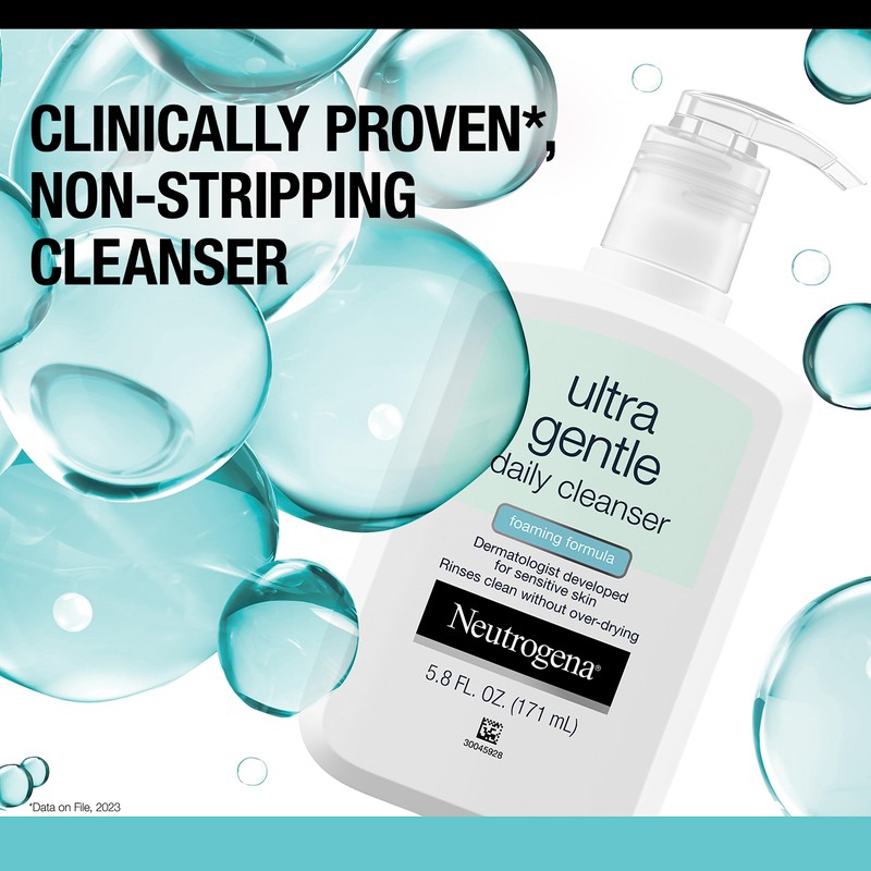 Neutrogena Ultra Gentle Foaming Facial Cleanser is dermatologist developed for daily cleansing of sensitive skin. The non-stripping formula thoroughly washes away dirt, oil and bacteria and removes makeup without over-drying skin. This extra gentle face wash combines the superior cleansing of Neutrogena technology with the maximum gentleness of a sensitive skin cleanser. With patented skin-friendly technology, the effective yet gentle formula removes impurities without disrupting skin's natural moisture to leave it feeling clean yet naturally soft - not dry or tight. And unlike some other face washes for sensitive skin that can leave behind residue, this foaming cleanser rinses completely clean, leaving behind no pore-clogging residue so skin feels refreshed. Oil-free, soap-free, hypoallergenic and non-comedogenic, this daily cleanser is clinically proven to be gentle on sensitive skin and makes a great addition to a daily skincare routine.