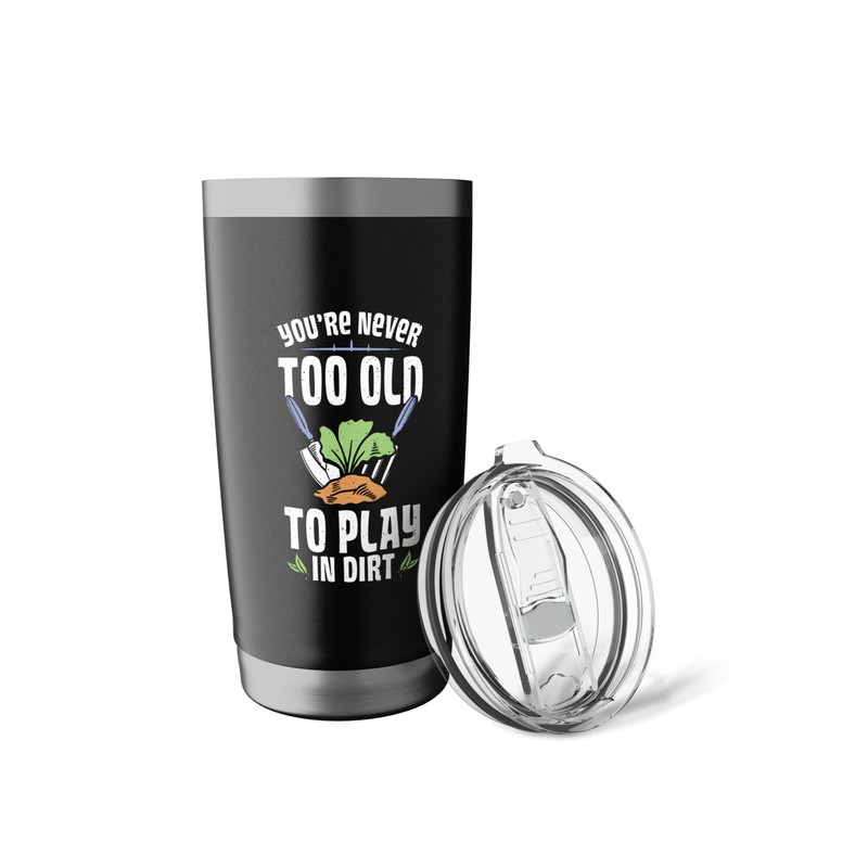 Never Old To Play In Dirt Gardening Flower Planting Gardener Stainless Steel Insulated Tumbler