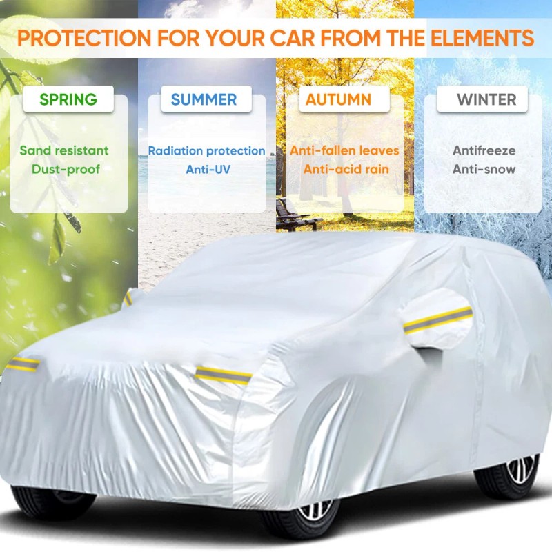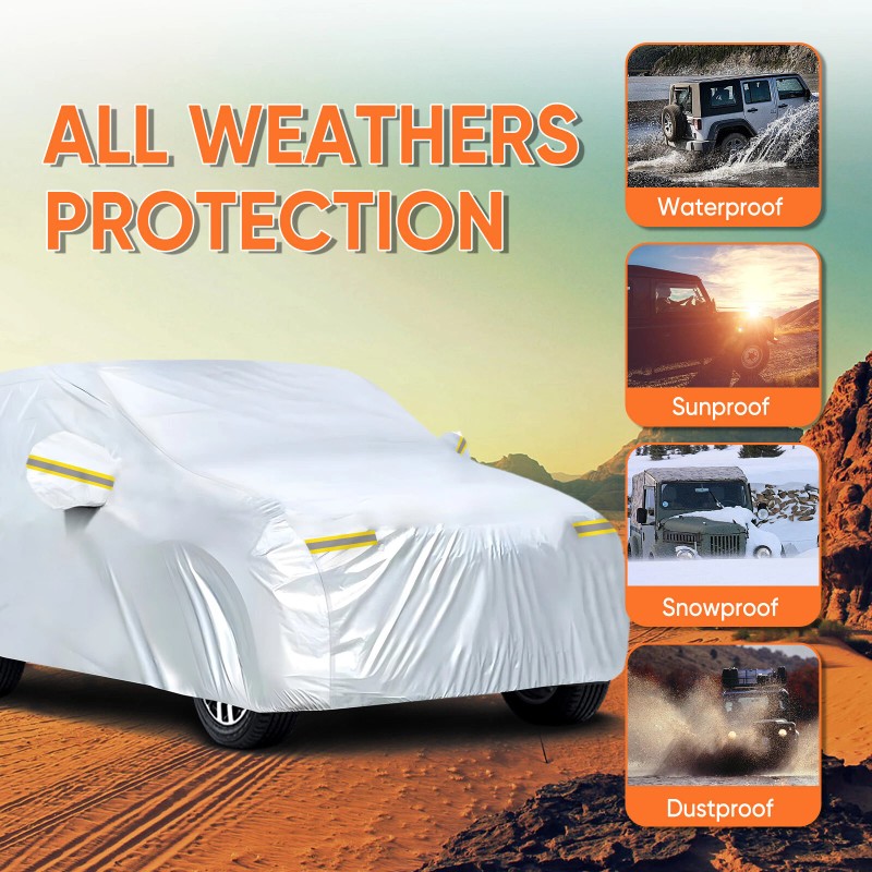 【Secure Your Vehicle Cover】Our elasticized hem holds your cover in place in windy-conditions.