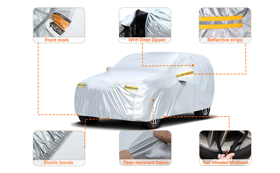 【Windproof Design】4 wheels Straps To Secure SUV Cover In Heavy Wind From Blowing Off.