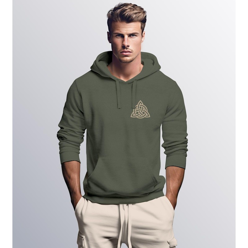 - Cool hoodie for men with subtle Valknut logo on the left chest. A great basic sweater for lovers of Nordic mythology and their symbols