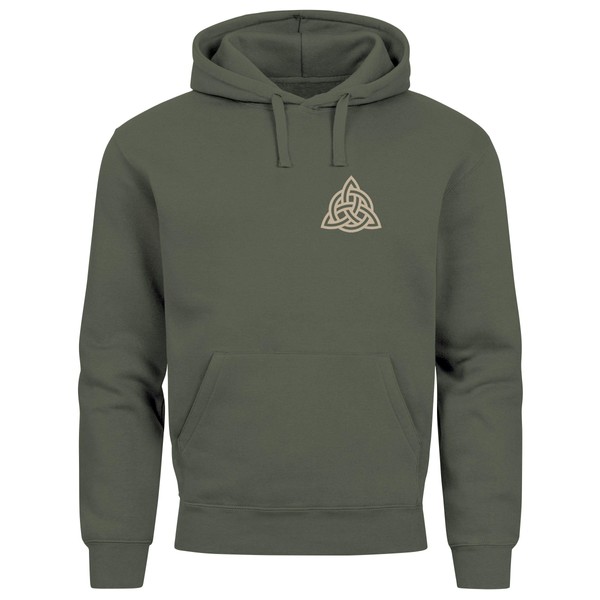 Neverless® Men's Hoodie with Logo Viking Norse Mythology Valknut Wotan's Knot Valhalla, Valhalla Olive