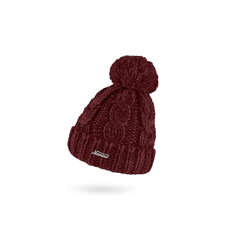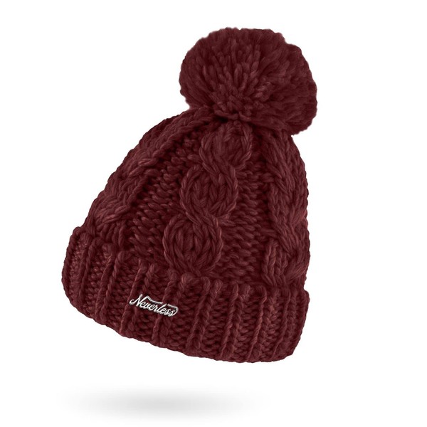 Neverless® Women's Chunky Knit Knitted Bobble Hat Cable Knit Pattern Winter Hat Envelope, bordeaux