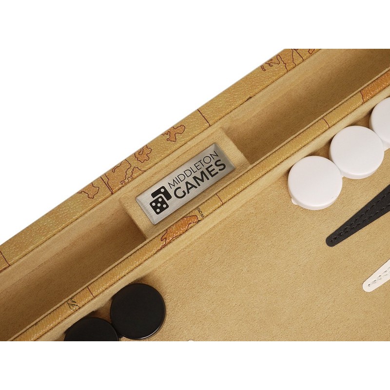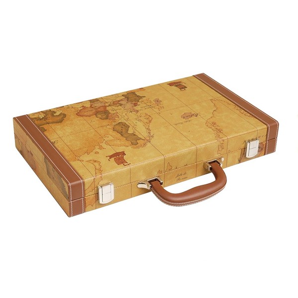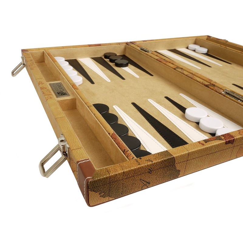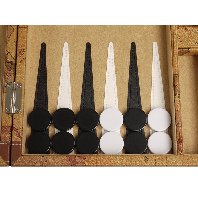 New! - 15-inch Luxurious Map Backgammon Set - Brown Board