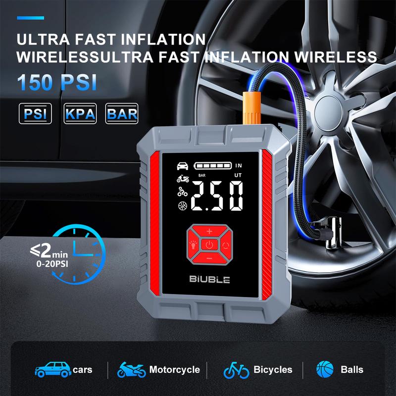 New 9000A BIUBLE Portable Car Jump Starter (ALL Gas, 10.0L Diesel) With Tire Inflator, 12V Car Battery Jump Power With LED Light portable jumpstarter car battery batteryjumper jump starter