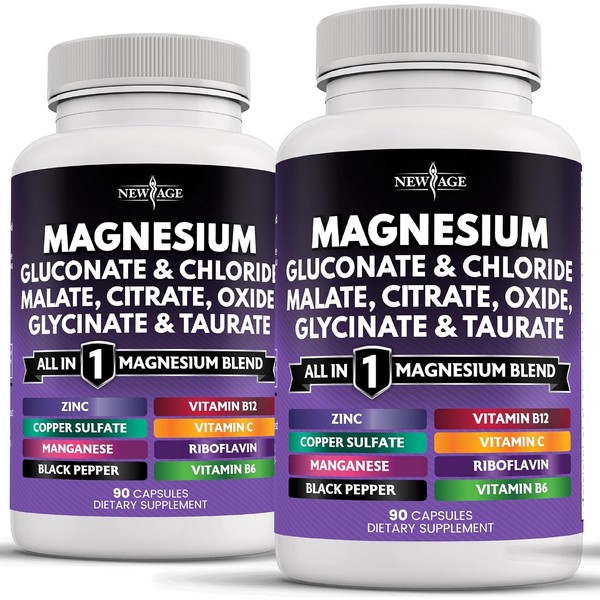NEW AGE Magnesium Supplement -Powerful Glycinate Citrate Malate Oxide Taurate Aspartate Gluconate Orotate & Mag Chloride Manganese Bone Health and Bone Strength, Joint Support- 180 Count