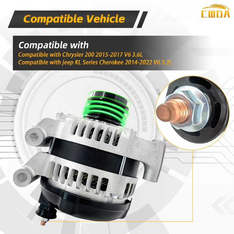 New Alternator Compatible with 2015-2017 Chrysler 200 3.6L,2014-2022 Jeep Cherokee KL V6 3.2L 160 Amp,12 Volt Alternator 6-Groove Decoupler Pulley Clockwise Replace# 4210000820, 4210000821