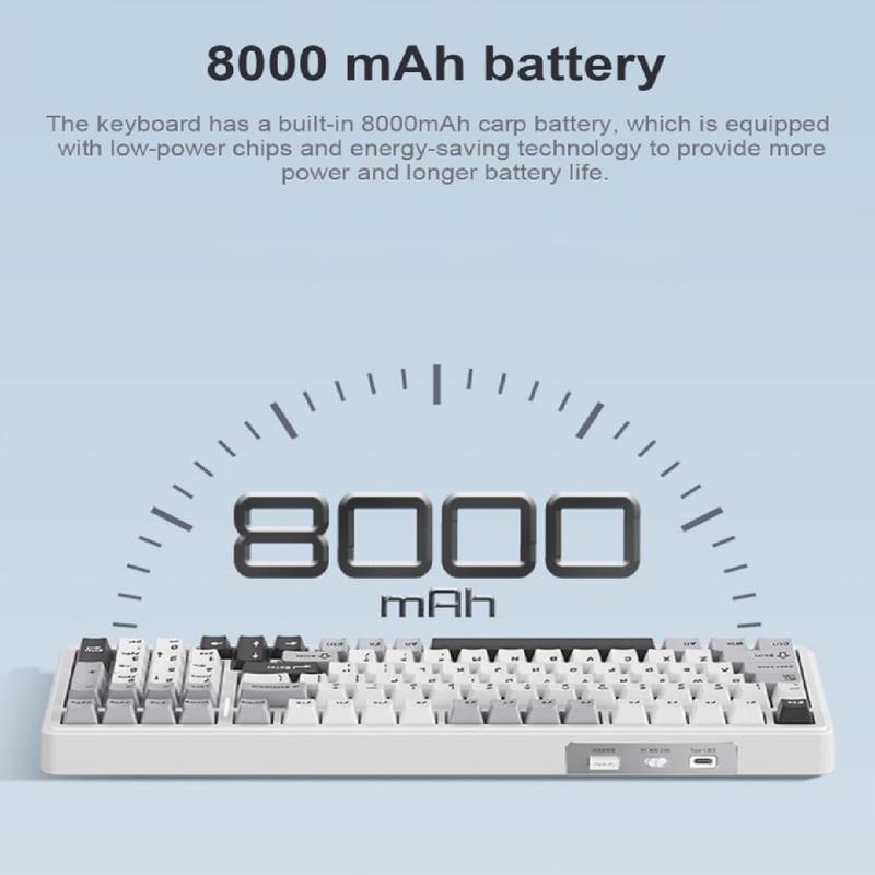 • Multi-Device Connection: Custom keyboard supports Bluetooth 5.0, 2.4GHz wireless and Type-C wired connectivity, allowing you to seamlessly switch between 5 devices depending on the scenario with the FN+ key combination. 8000mAh battery ensures efficient multitasking and continuous performance in all three connection modes, making it ideal for work and play