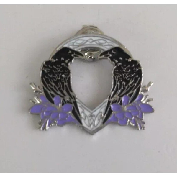 New Beautiful Black Ravens With Purple Flowers Enamel Lapel Hat Pin