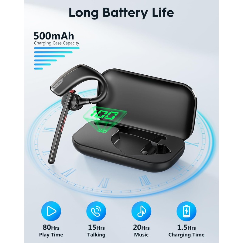 New bee - Auriculares Bluetooth inalámbricos Bluetooth para teléfono celular con funda de carga de 500 mAh, tiempo de reproducción de 80 horas, V5.2, doble micrófono, cancelación de ruido, manos