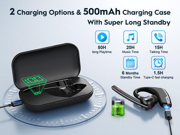 [Large Capacity Battery Support] Equipped with a 500mAh charging case, the New Bee m51 ensures nearly 80 hours of music/call time for your Bluetooth earpiece. The single headset offers 15-20 hours of usage time, providing flexibility for extended use. Choose between two charging methods to address any battery concerns.