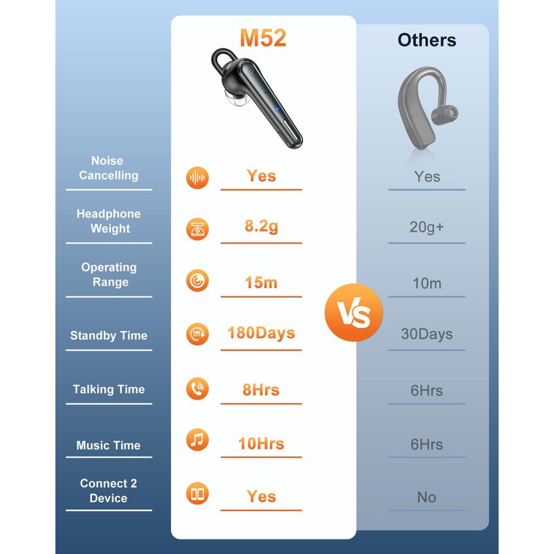 • Bluetooth 5.1 and Dual Device Connection: Bluetooth hands free ear piece with microphone is equipped with the Bluetooth 5.1 and is compatible with most Bluetooth devices such as iOS or Android cellphones, computers, PCs, laptops, iPads, and more. This headset with mic allows you to connect to 2 devices at the same time and provides a seamless, stable connection from up to 15M away (without signal loss or music dropouts).