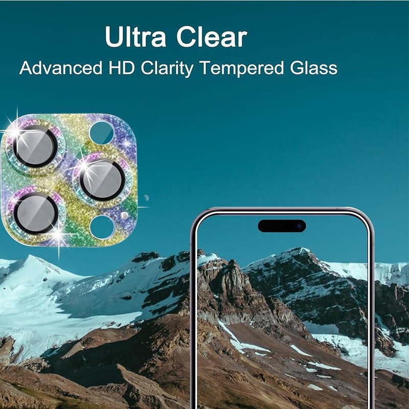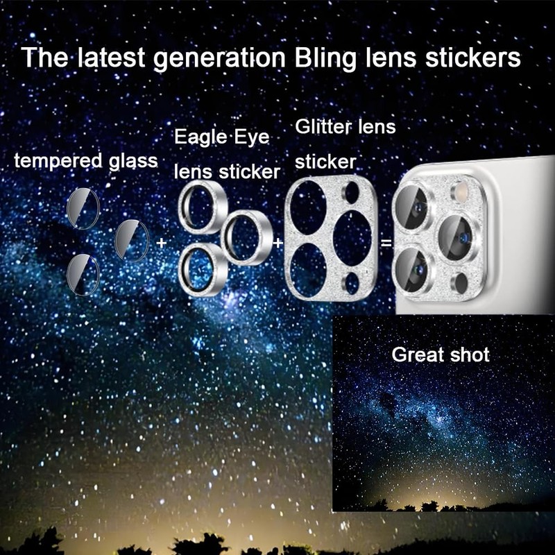 - 【Bling Metal Camera Lens Protector with glass Screen 】The Upgraded version Bling Crystal camera lens protector with glass Screen on the Lens sticker hole ,package 2 pack .