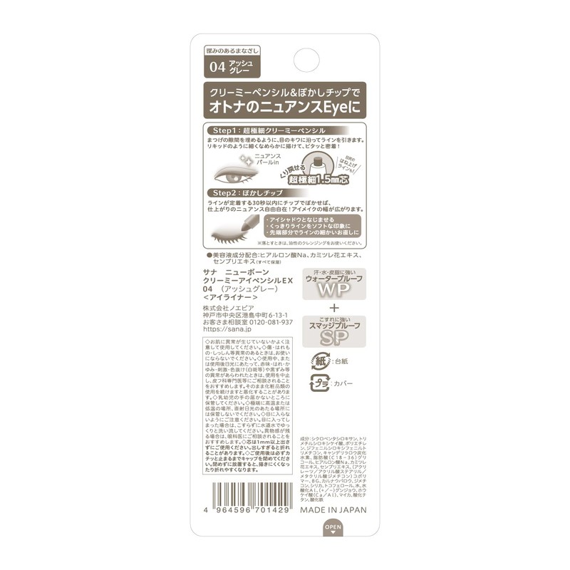 New Born Creamy Eye Pencil EX 04 (Ash Gray) 1 Piece (x1)