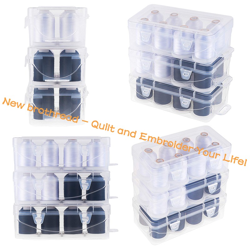 After continuous research, development, and testing, the New brothread embroidery sewing thread kit with a clear storage box was released. Not only is it easy to organize spools, but it is also convenient for customers to take them out for embroidery classroom or other quilting activities.