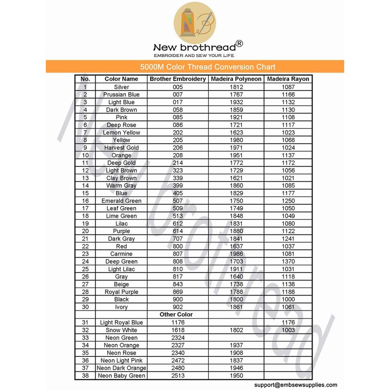 - ★ Each spool has 40 W.T. and 5000 m length. Ideal for all embroidery machines, including home, semi-industrial, industrial and commercial embroidery machines.