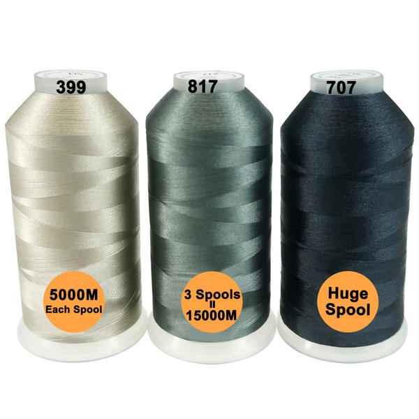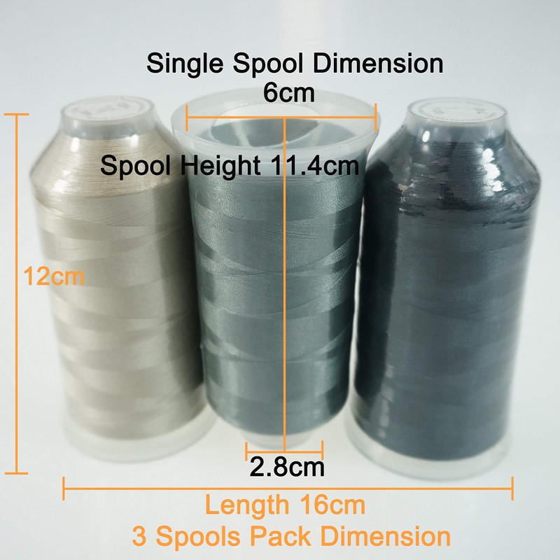 - ★ 3 giant spools 5000 m various grey colours polyester machine embroidery thread. It can be used for your embroidery and sewing for a long time.