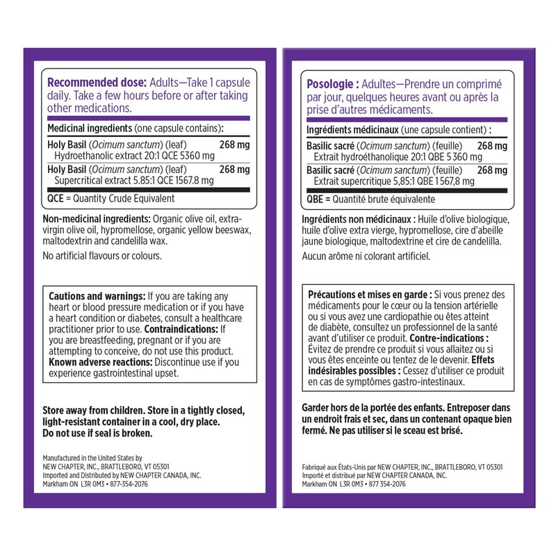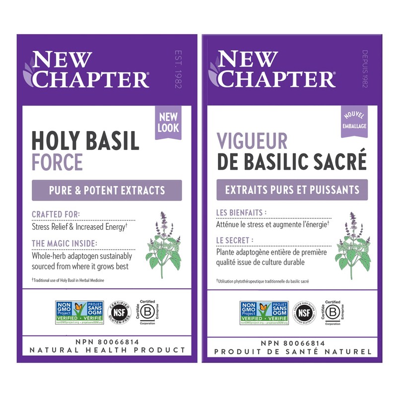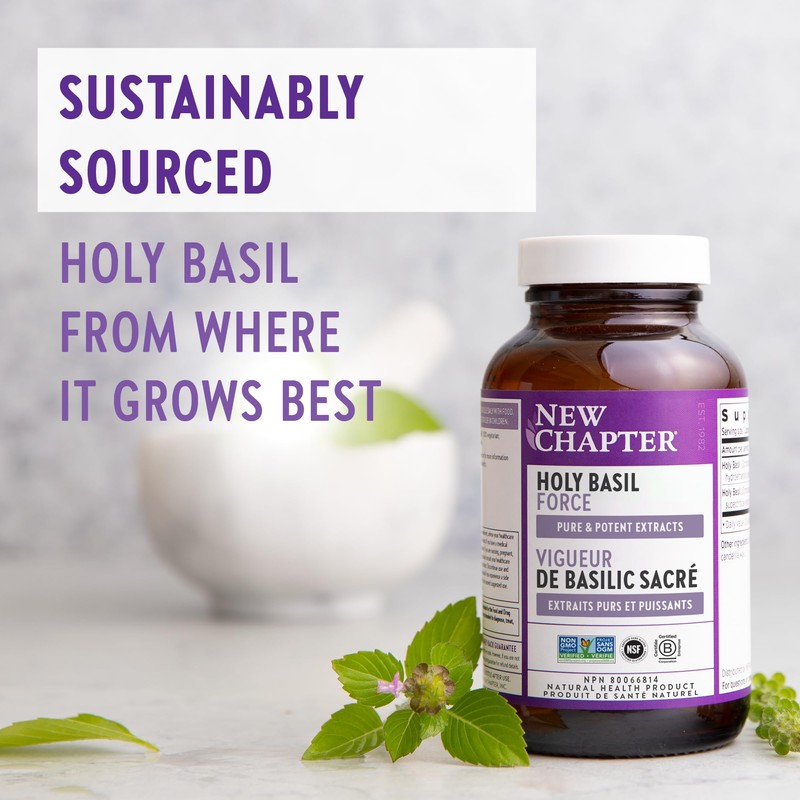 New Chapter Holy Basil Force with Supercritical Holy Basil for Immune Support + Mood Support + Non-GMO Ingredients - 60 ct Vegetarian Capsules