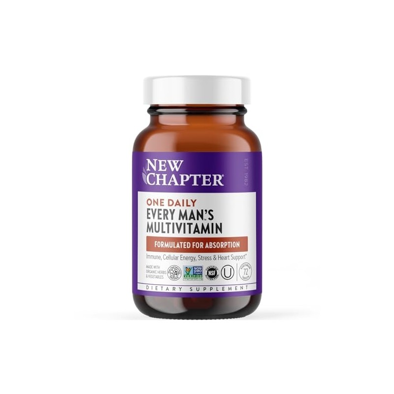 New Chapter Men's Multivitamin for Immune, Stress, Heart + Energy Support with Fermented Nutrients - Every Man's One Daily, Made with Organic Vegetables & Herbs, Non-GMO, Gluten Free - 72 ct