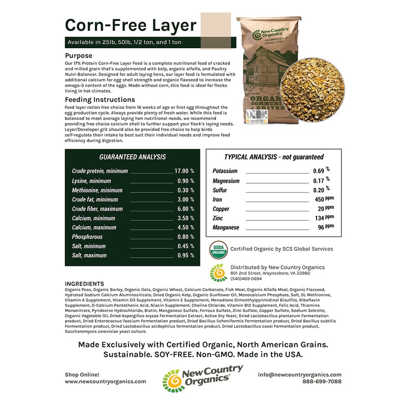 New Country Organics Soy-Free, Corn-Free, Layer Feed, 25 lbs