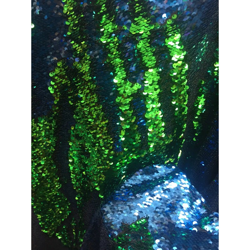 New Creations Fabric & Foam Green Blue Shinny Mermaid Fish Scale 2 Way Stretch Flip Flop sequins-by the yard
