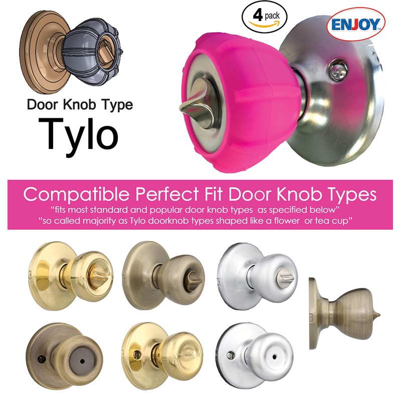 New Enjoy Cover - Door Knob Cover Grips Non Slip Arthritis & Senior Living Aids Grippy Easy Open Decorative. Simple Functional Effective Solution- 4 Pack (Hot Pink, Tylo)