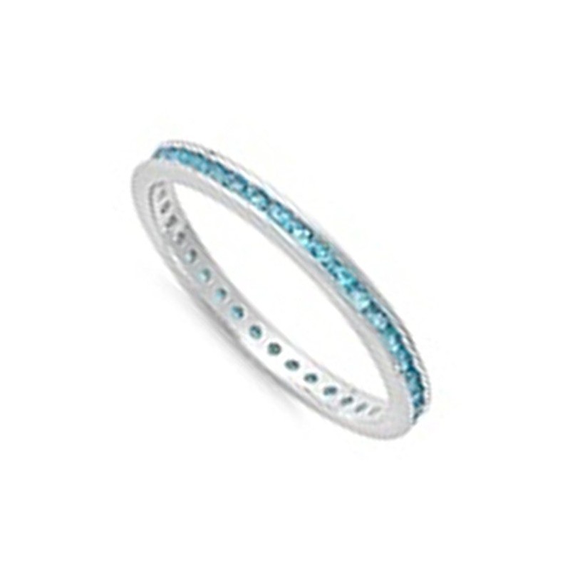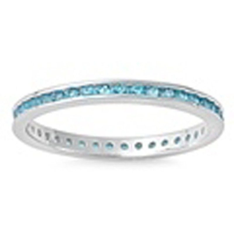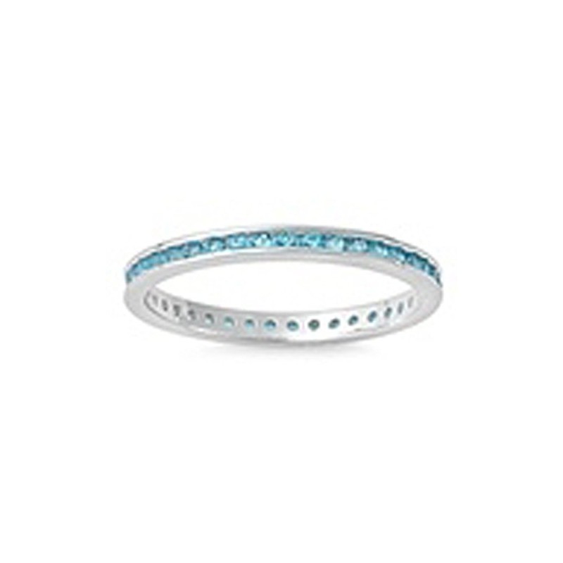New Eternity Blue Simulated Sapphire Ring New .925 Sterling Silver Band Size 6