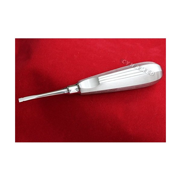 - TYPE: SURGICAL GERMAN STAINLESS STEEL QUANTITY: 1 EACH DESCRIPTION : For permanent removal of crowns by breaking the seal between tooth and crown after sectioning with a bur. The mini-elevator handle and notched tip provide a secure grip and excellent control when breaking the seal of cement. Pressure against the tooth is lessened, which reduces the potential for tooth fracture