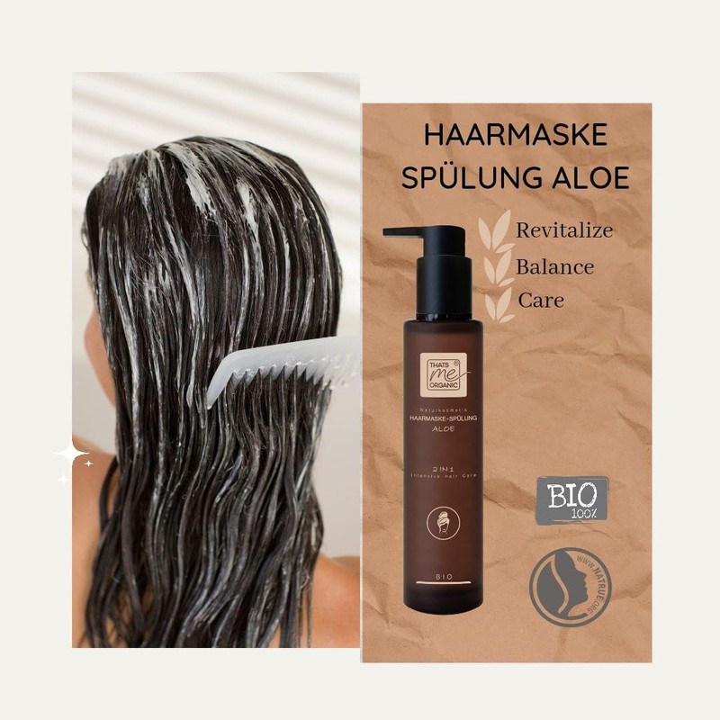 After washing, you can massage our organic hair mask and conditioner aloe 2 in 1 intensive hair care 200 ml into your hair and let it work. It smooths and makes your hair shine. It also gives you a pleasant fresh fragrance.