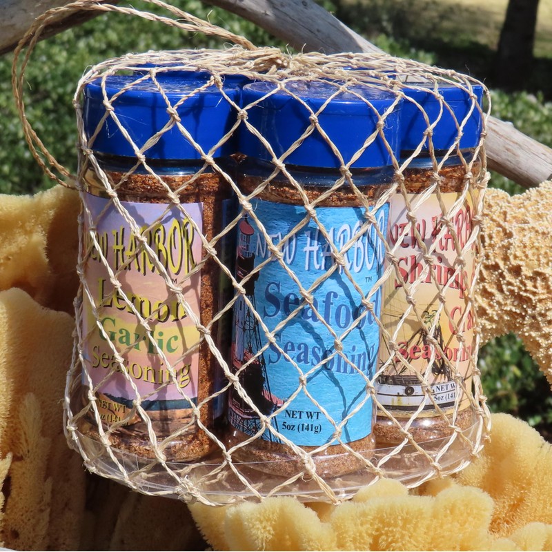 - đ5 FLAVOR NET GIFT BAG â A FLAVORFUL SURPRISE - Includes five of New Harbor's boldest blends: Seafood, Lemon Garlic, Salmon, Shrimp & Crab, and Blackened Seasoningâperfectly packed for gifting or personal indulgence.
