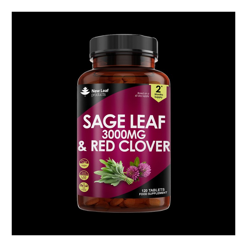 INTRODUCING NEW LEAF'S SAGE LEAF & RED CLOVER TABLETS - Our Supplement offer a unique blend of nature's finest, encapsulated in a two-month supply with 120 tablets per bottle. Each serving contains 3000mg of a balanced mix of sage leaf and red clover. Sage, a revered herb from the Mediterranean, paired with red clover, which thrives in the meadows across Europe & Asia. This combination harnesses the botanical strengths of both plants, bringing together their rich histories in herbal wellness.