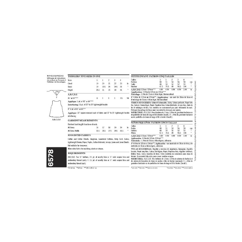 New Look Sewing Pattern 6578 - Toddler Dresses Sizes: A (1/2,1,2,3,4)