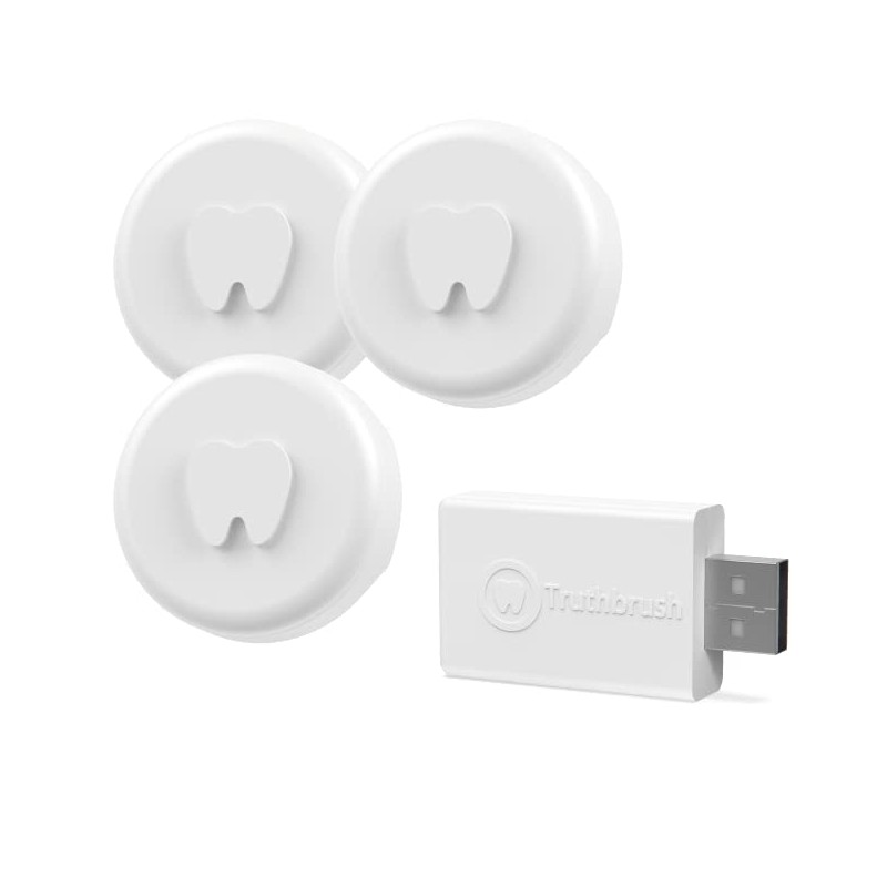 (New Model) Truthbrush PRO Tracker Hub Skin Bundle. Replaceable battery, 2 Minutes Beeper Timer. Track Brush Duration, Coverage. Free Smart Android iOS App. Ready to use (3 Tracker + 1 Hub, White)