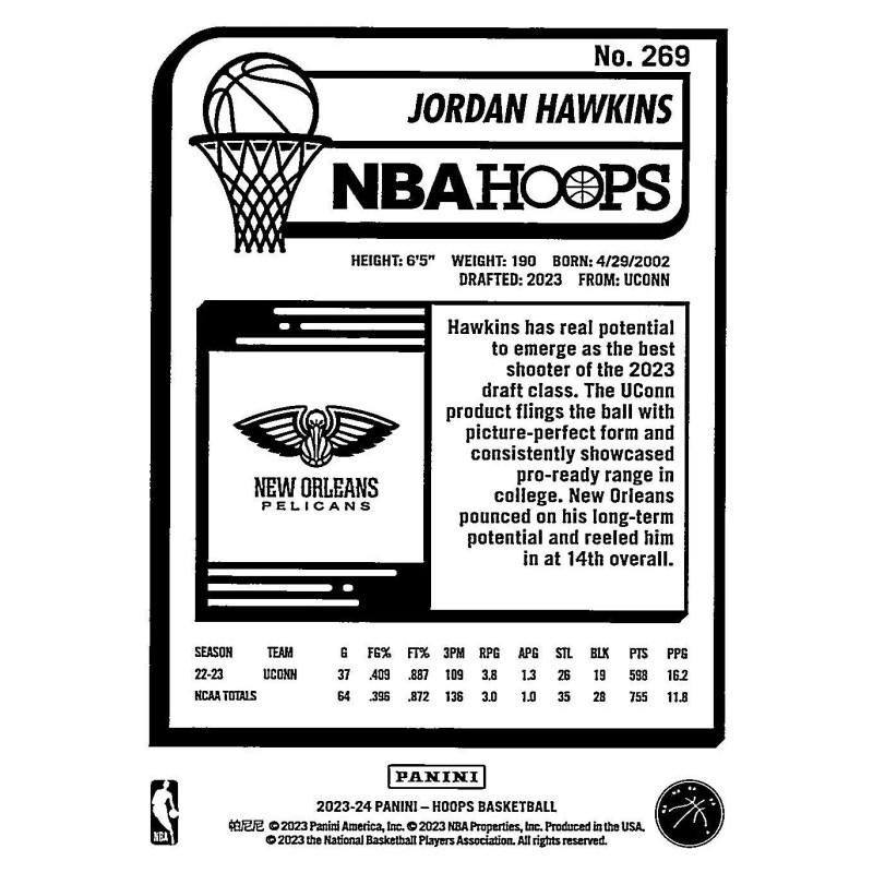 This is a brand new 2023 / 2024 New Orleans Pelicans Hoops Basketball Factory Sealed NBA Licensed 9 Card Team Set with CJ McCollum, Zion Williamson, Trey Murphy III, Dyson Daniels, Jonas Valanciunas, Herbert Jones, Jose Alvarado, Brandon Ingram and Jordan Hawkins Rookie Card #269.