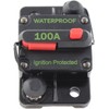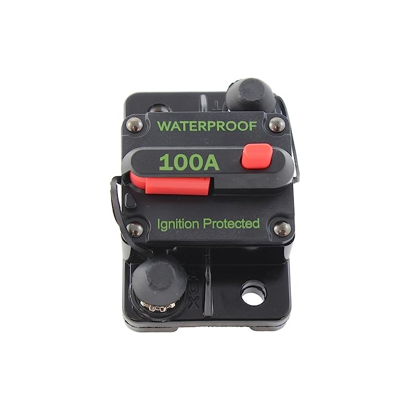 - Marine Grade Waterproof Circuit Breaker Rated at 100 Amps for 12 Volt to 42 Volts, Easy Surface Mount Installation. These have two stainless steel 1/4" stud terminals with nuts & lock washers, they can be reset quickly & they are ignition protected, meets USCG & ABYC requirements.