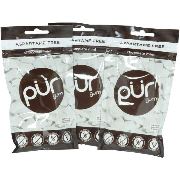 NEW! PUR Gum Chocolate Mint, 2.72 oz, 3 Bags