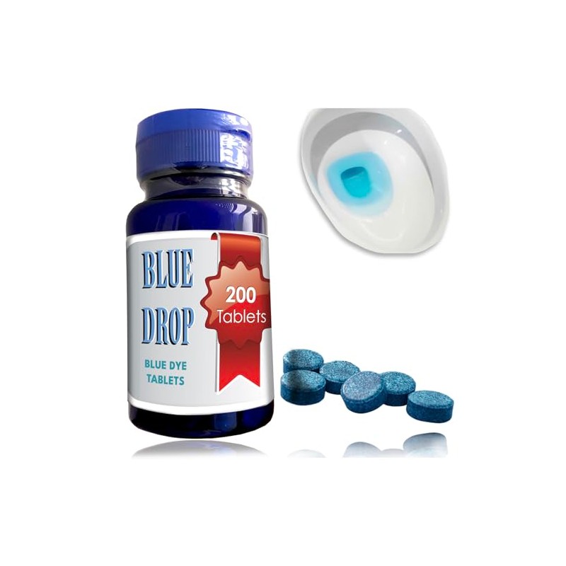 New Resources Group Blue Drop Dye Tabs 200 pc Toilet Dissovable Bluing Tablets Prevent Testing Tampering in EZ Pour Bottle