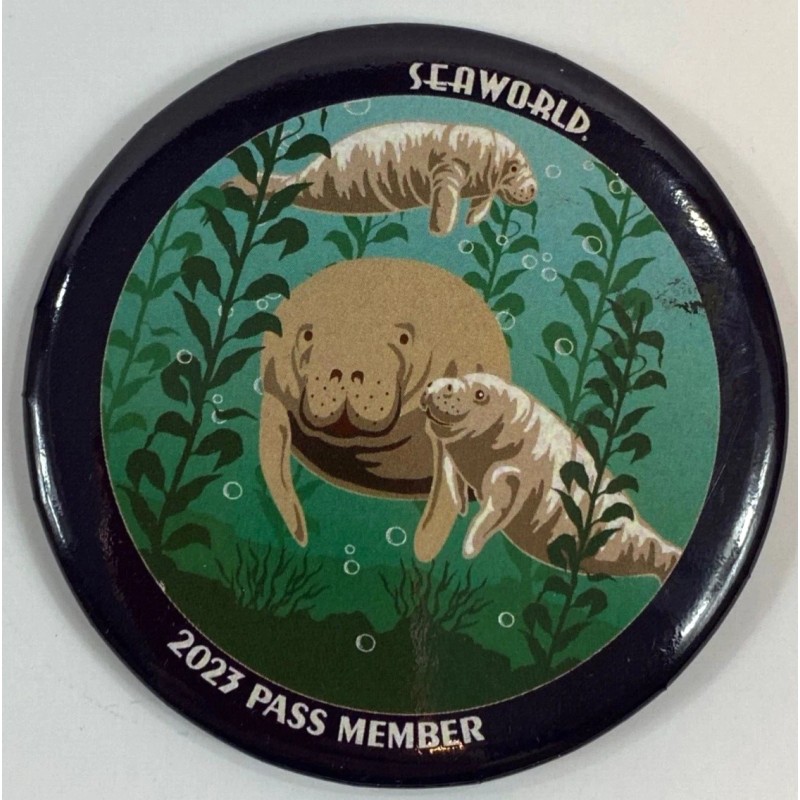 New! SeaWorld 2023 Manatee Pass Member Pin Button