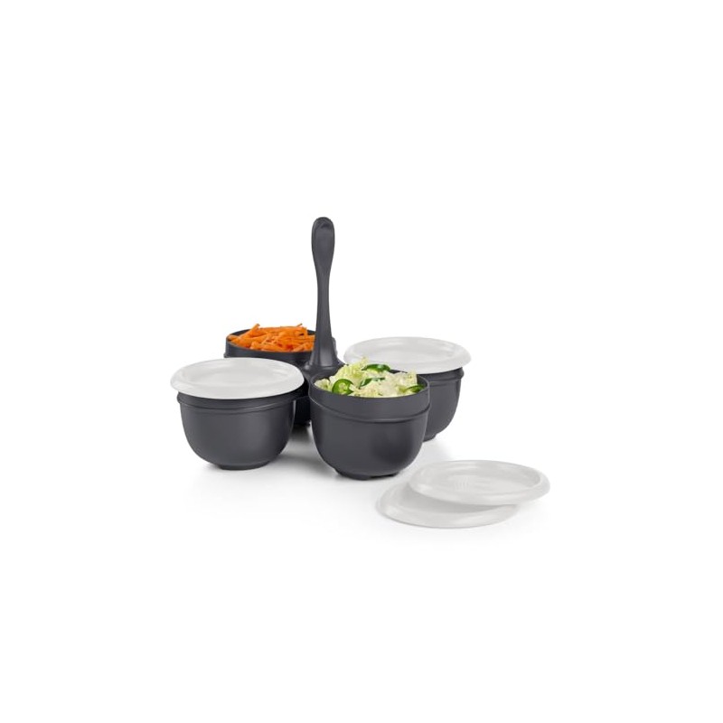 - Includes one handle, four 1-cup/250 mL bowls connected as pairs, and four seals.