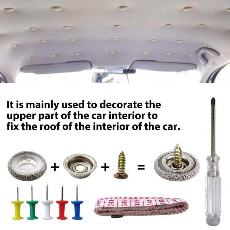 • ♣♣Easy to Use: It is convenient to operate and this car headliner repair kit will make your car interior looks roomy and no more saggy roof.Measuring the distance with tape measure, after using push pin determine the position, fixing the base with screws, then cover the grid button.It doesn't need other tools, easy to install.