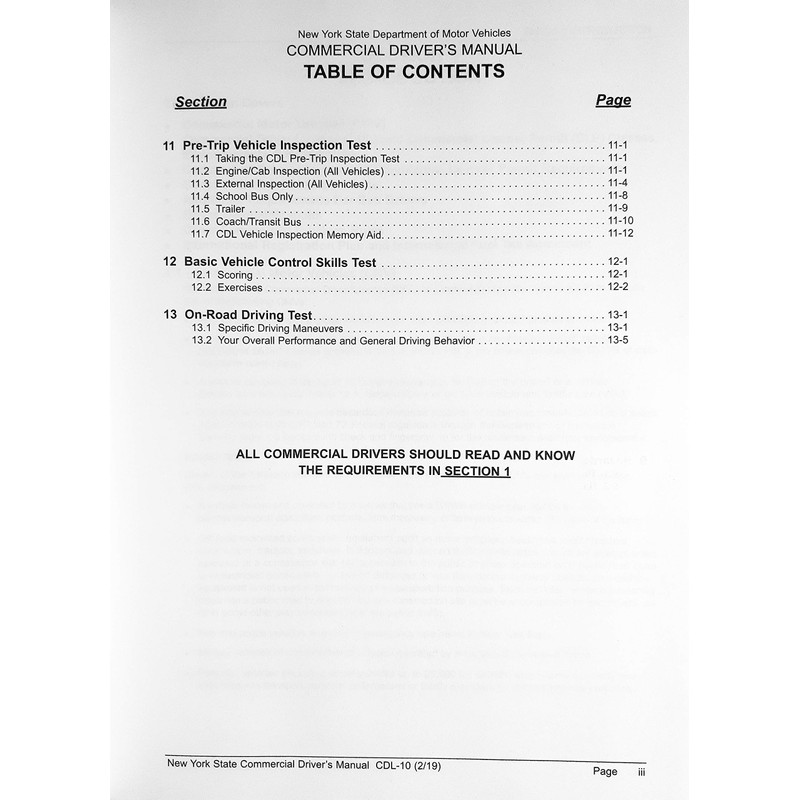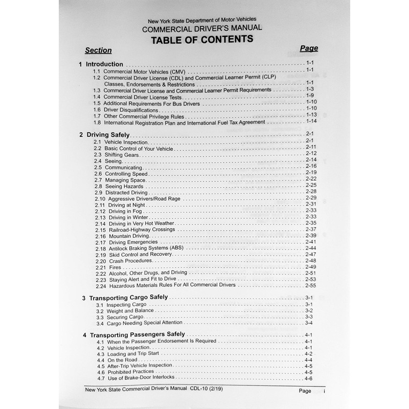 Current New York State Commercial Driver's Manual CDL-10. Official DMV handbook. The handbook covers the following subjects: How to apply for a New York CDL. Transporting cargo and passengers safely. Air brakes. Hazardous materials vehicles. School buses.