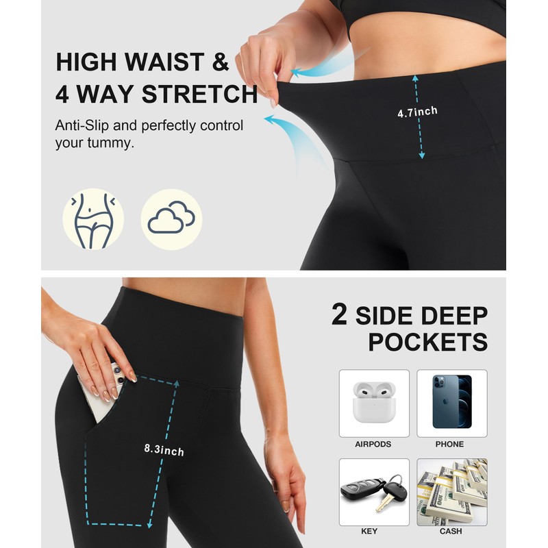 - 2 OUTER POCKETS:NEW YOUNG womens capri leggings have produced new pockets(8.27inch) that prevent deformation and keep your pocket from sinking, even when filled.They can easily hold on your Pro Max ,cards, keys and wallet.No more fumbling with bags or worrying about your valuables – just slip them into the deep pockets and keep moving forward!