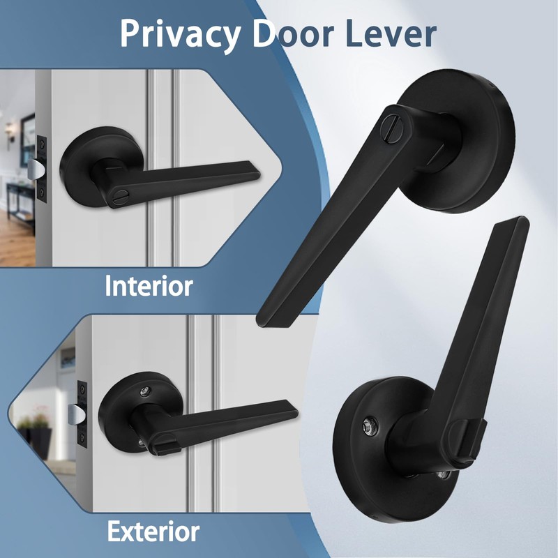 NEWBANG HARDWARE Black Door Lever for Bedroom & Bathroom Solid Privacy Door Lever with MatteBlack Finish, MD8820-DB-BK-1P