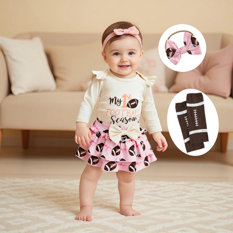 - Design: Newborn girl outfit football themed, my first football season outfit baby girl, letter and football embroidered long sleeve onesie, matching ruffled football skirt tutu bottoms and stockings headband, baby girl football romper outfit, football bodysuit baby girl, long sleeve football clothes girl, infant girl football outfit