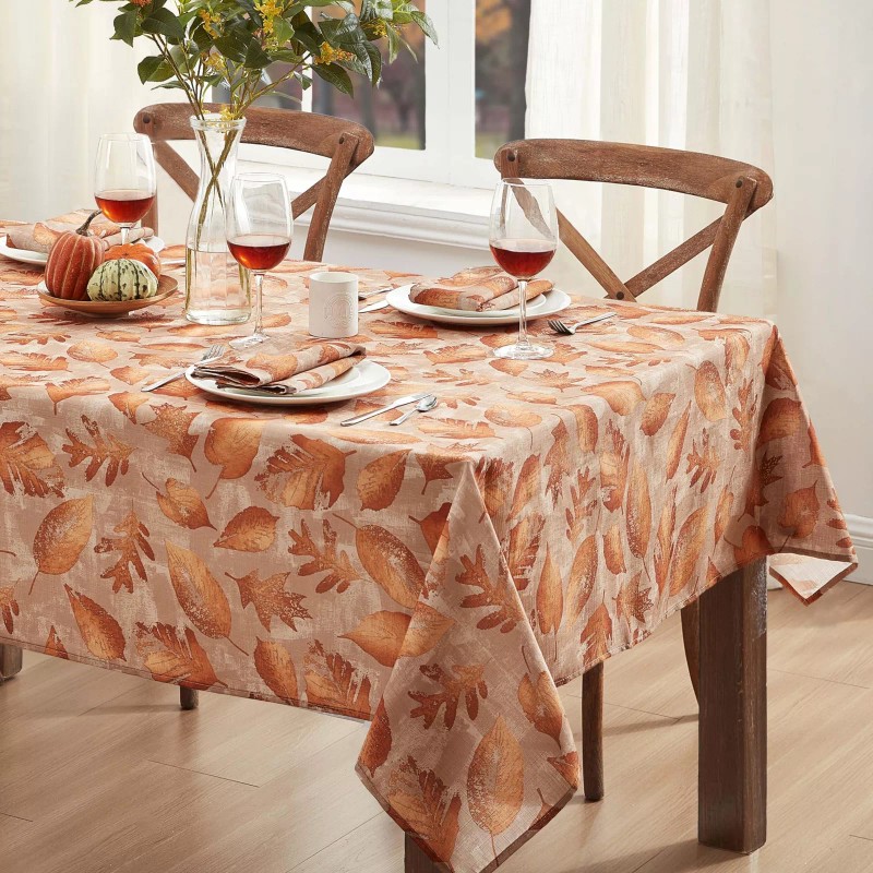 • Newbridge Metallic Foliage Contemporary Autumn and Thanksgiving Fabric Tablecloth, Golden Metallic Leaf Print, Soil Resistant, No Iron Easy Care Tablecloth, 60 Inch x 102 Inch Oblong/Rectangle, Taupe