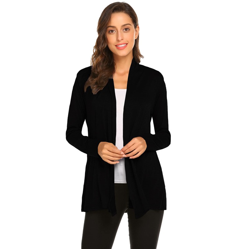 Newchoice Womens Classic Open Front Lightweight Cardigans Dressy Casual Long Sleeve Loose Kimono Cardigans (Black, S)